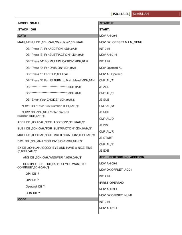 Web Search for jobs related to Assembly language programming 8086 examples pdf or hire on the worlds largest freelancing marketplace with 21m jobs. Web 8086 Assembly Language Programmingpdf - 8086 Assembly Language Programming Addition of two 16 bit numbers 8-bit Subtraction 16-bit 8086 Assembly Language. Web Up to 3 cash back Assembly Language Programming 8086 Exercise Solution docx - Free download as Word Doc doc docx PDF File pdf Text File txt or read online for.